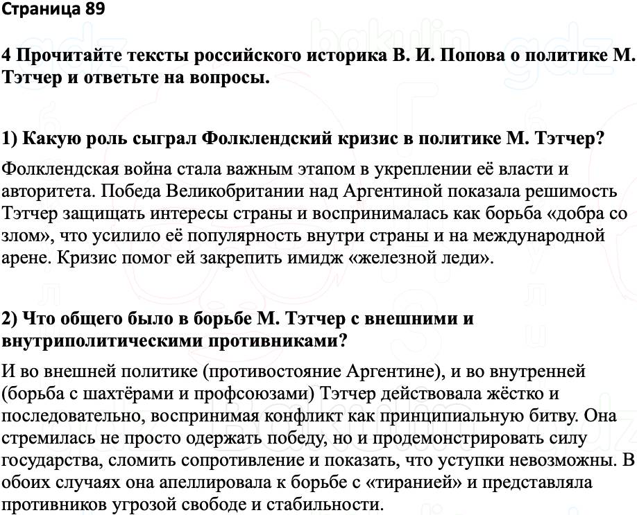 Прочитайте тексты российского историка В. И. Попова о политике М. Тэтчер и ответьте на вопросы.
