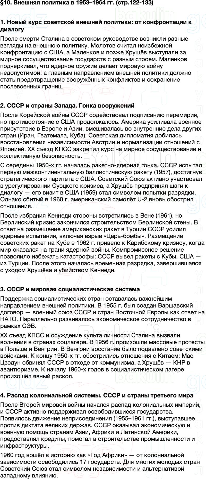 Правильный ответ к заданию Краткий пересказ содержание История России 11 класс Мединский, Торкунов 2025 Параграф, номер 10 бесплатно онлайн