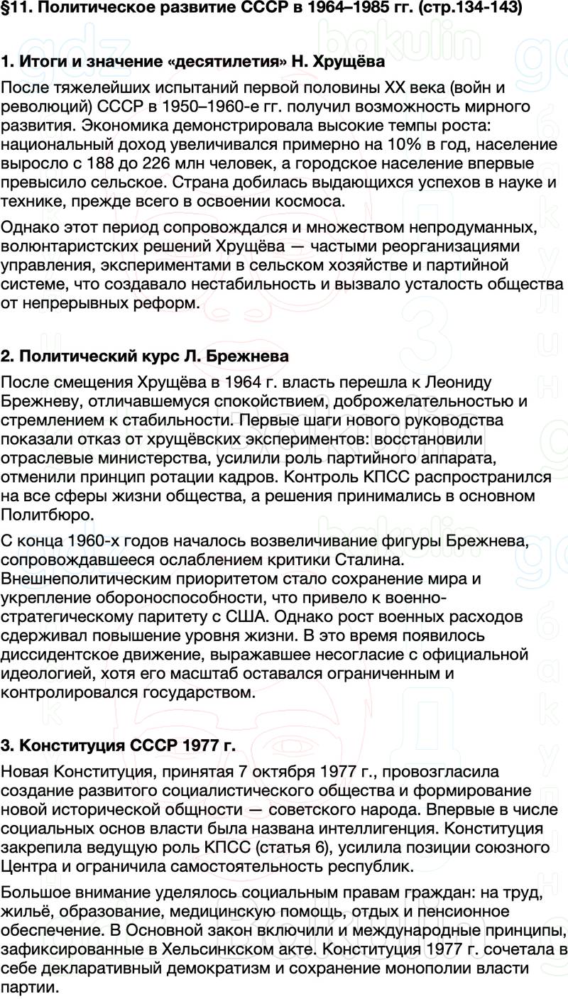 Правильный ответ к заданию Краткий пересказ содержание История России 11 класс Мединский, Торкунов 2025 Параграф, номер 11 бесплатно онлайн