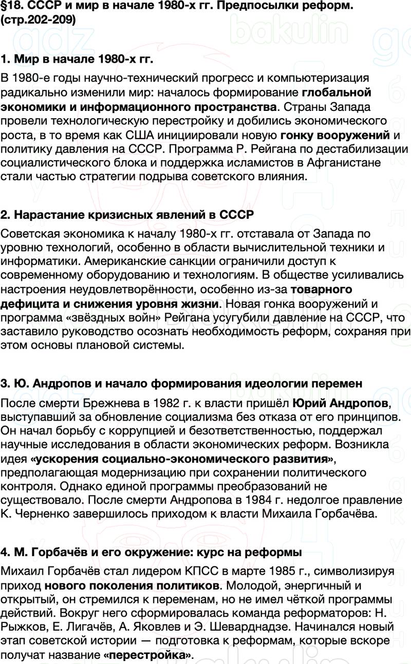 Правильный ответ к заданию Краткий пересказ содержание История России 11 класс Мединский, Торкунов 2025 Параграф, номер 18 бесплатно онлайн