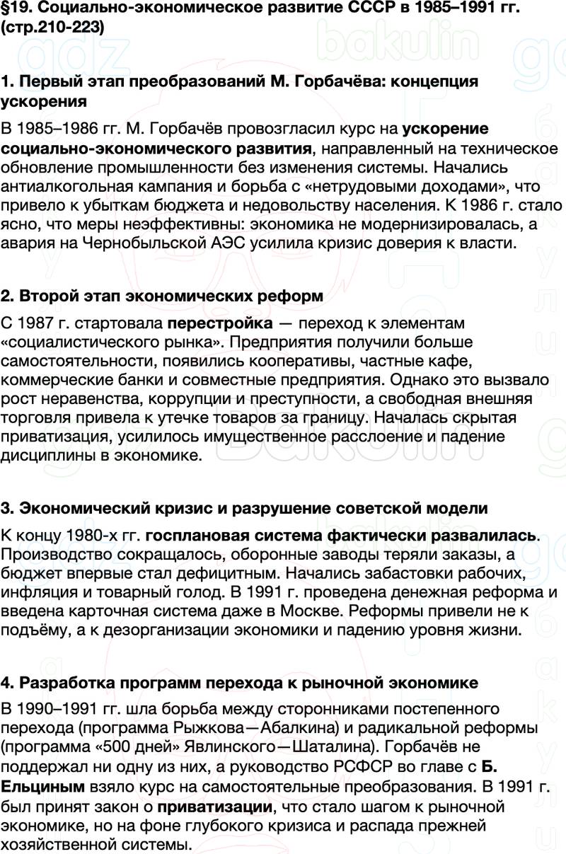 Правильный ответ к заданию Краткий пересказ содержание История России 11 класс Мединский, Торкунов 2025 Параграф, номер 19 бесплатно онлайн