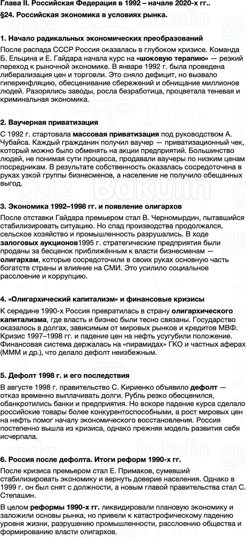 Правильный ответ к заданию Краткий пересказ содержание История России 11 класс Мединский, Торкунов 2025 Параграф, номер 24 бесплатно онлайн