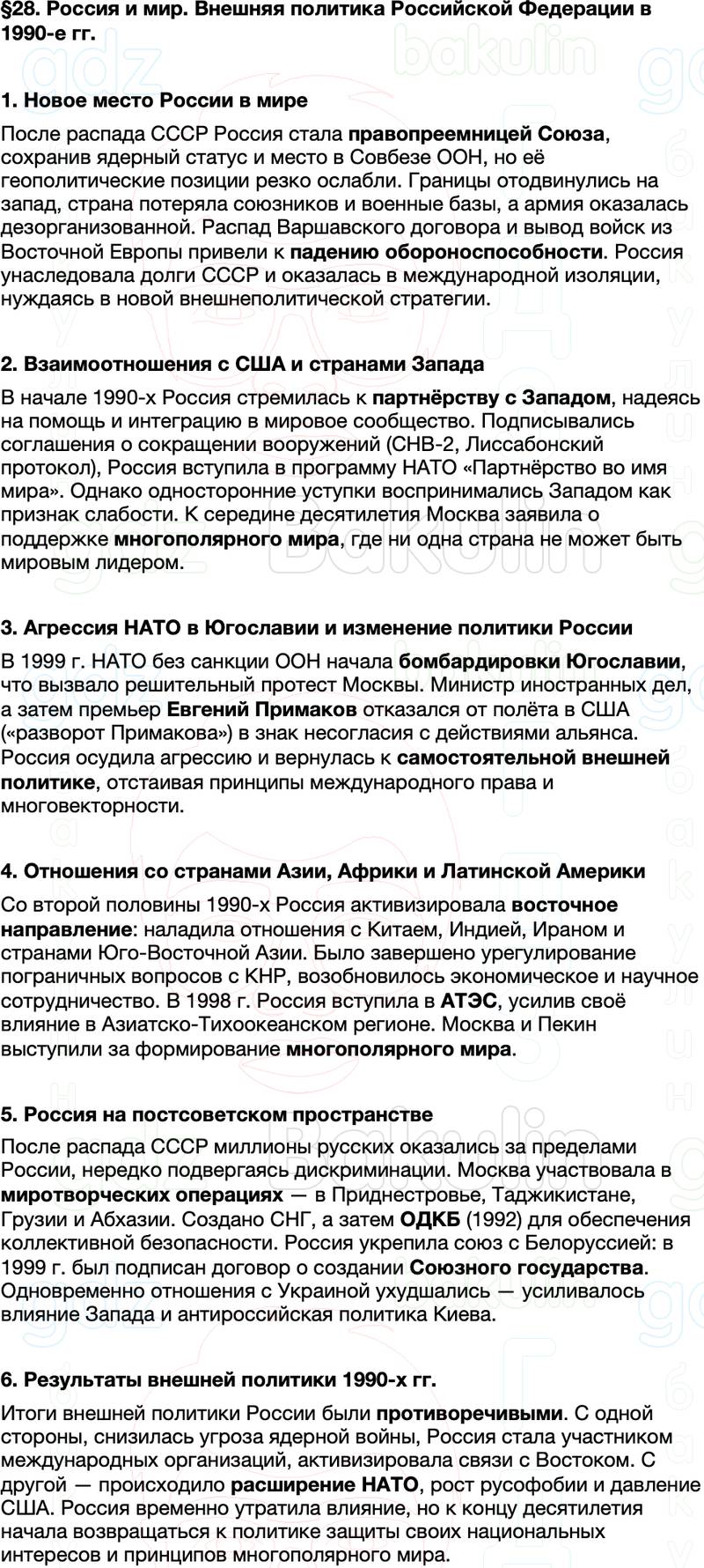 Правильный ответ к заданию Краткий пересказ содержание История России 11 класс Мединский, Торкунов 2025 Параграф, номер 28 бесплатно онлайн