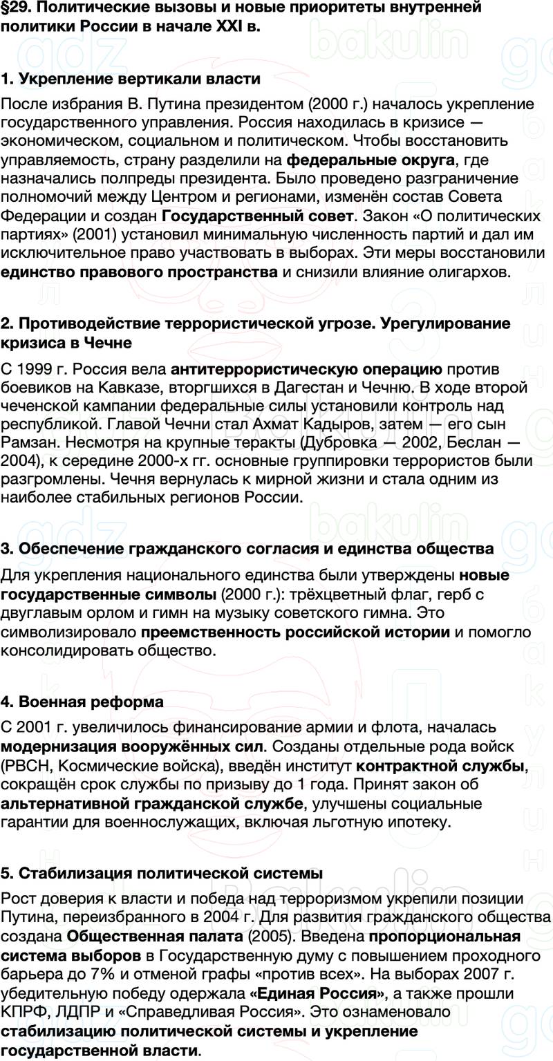 Правильный ответ к заданию Краткий пересказ содержание История России 11 класс Мединский, Торкунов 2025 Параграф, номер 29 бесплатно онлайн