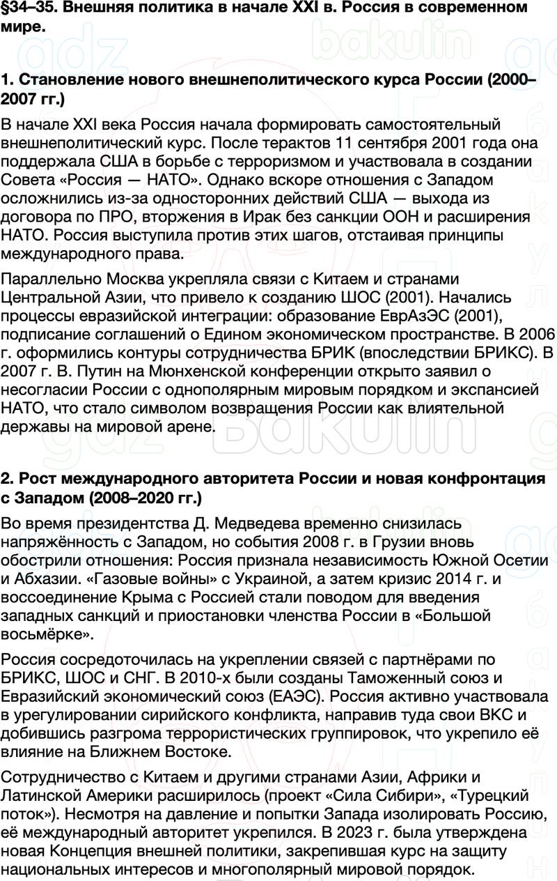 Правильный ответ к заданию Краткий пересказ содержание История России 11 класс Мединский, Торкунов 2025 Параграф, номер 34-35 бесплатно онлайн