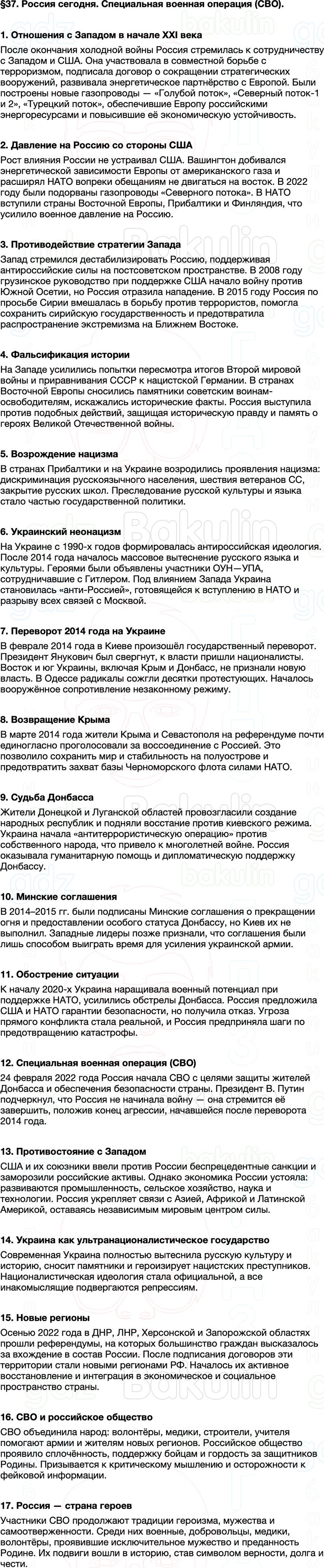 Правильный ответ к заданию Краткий пересказ содержание История России 11 класс Мединский, Торкунов 2025 Параграф, номер 37 бесплатно онлайн