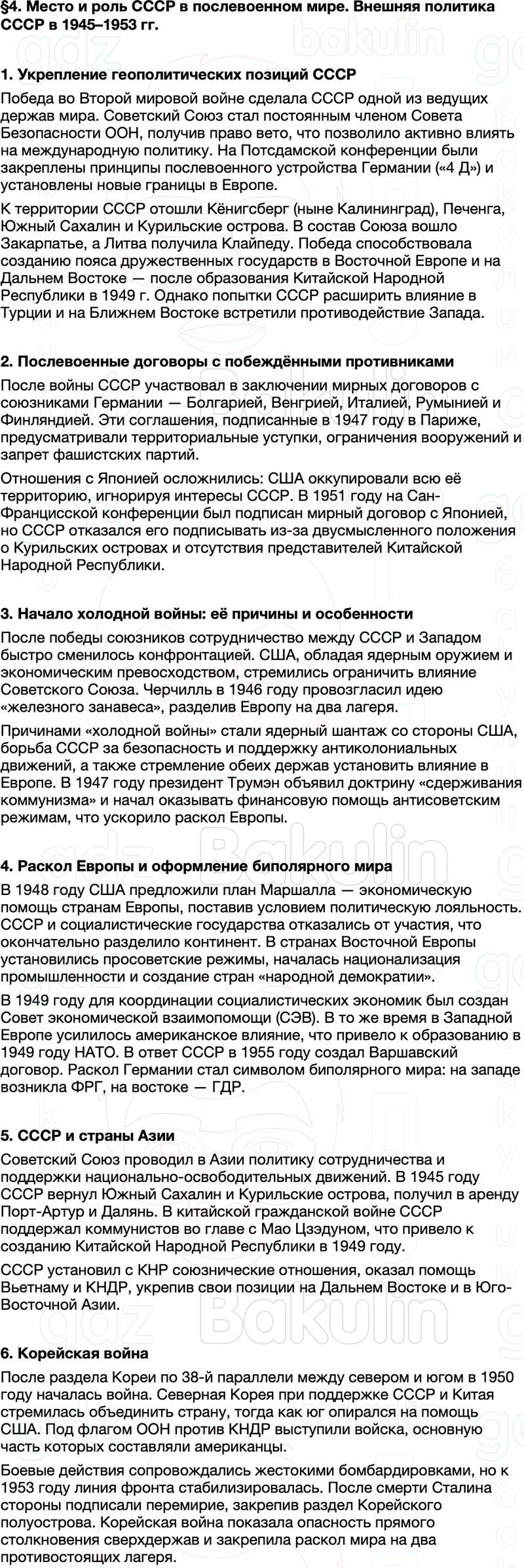 Краткий пересказ содержание История России 11 класс Мединский, Торкунов 2025 Параграф / 4