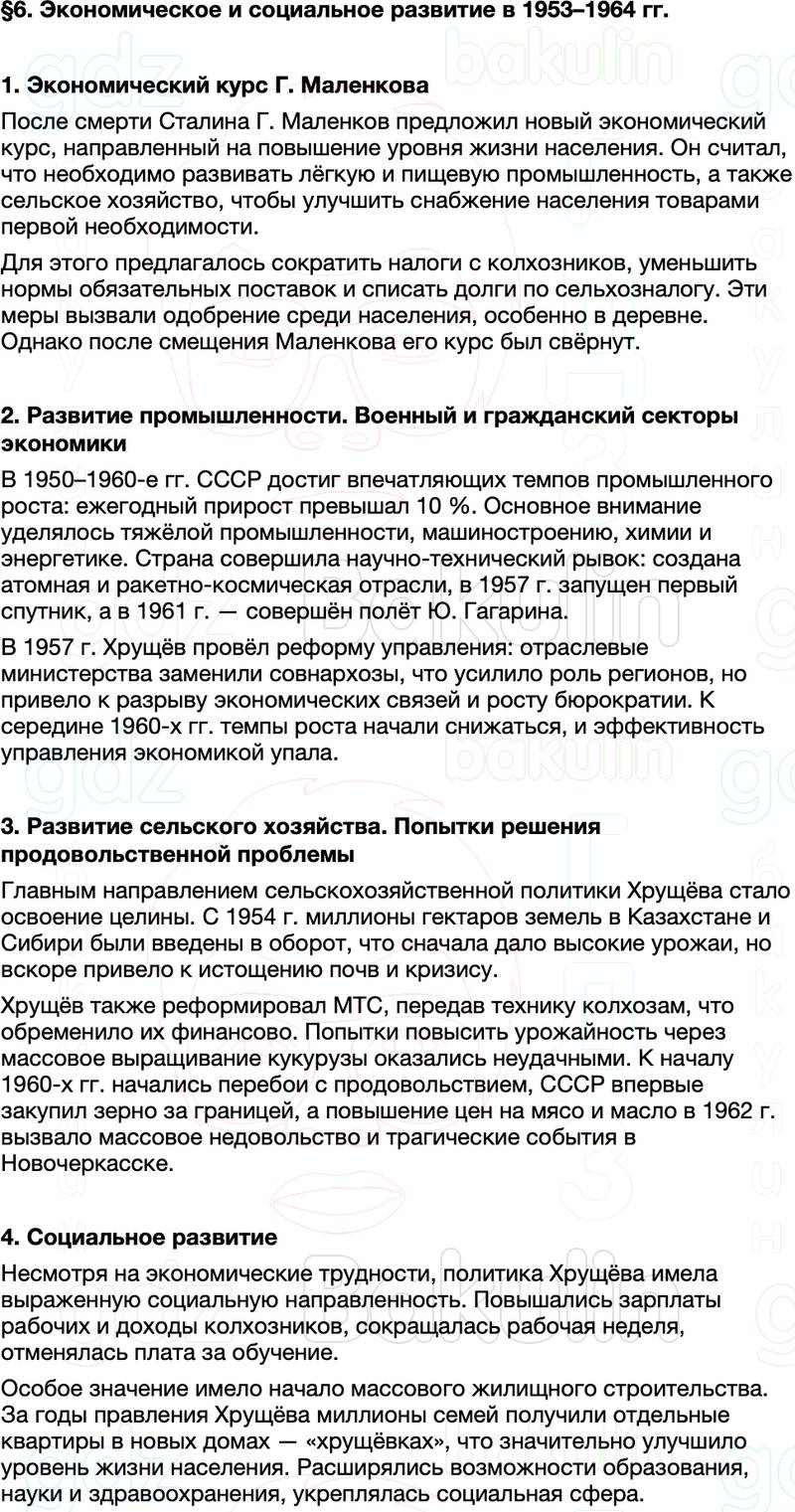 Правильный ответ к заданию Краткий пересказ содержание История России 11 класс Мединский, Торкунов 2025 Параграф, номер 6 бесплатно онлайн