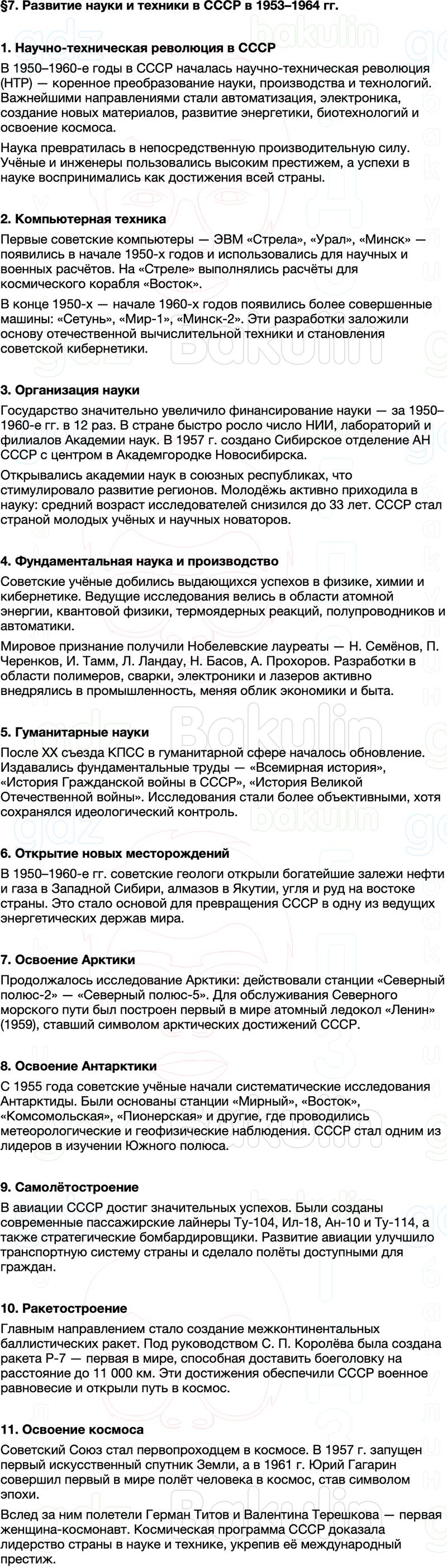 Правильный ответ к заданию Краткий пересказ содержание История России 11 класс Мединский, Торкунов 2025 Параграф, номер 7 бесплатно онлайн