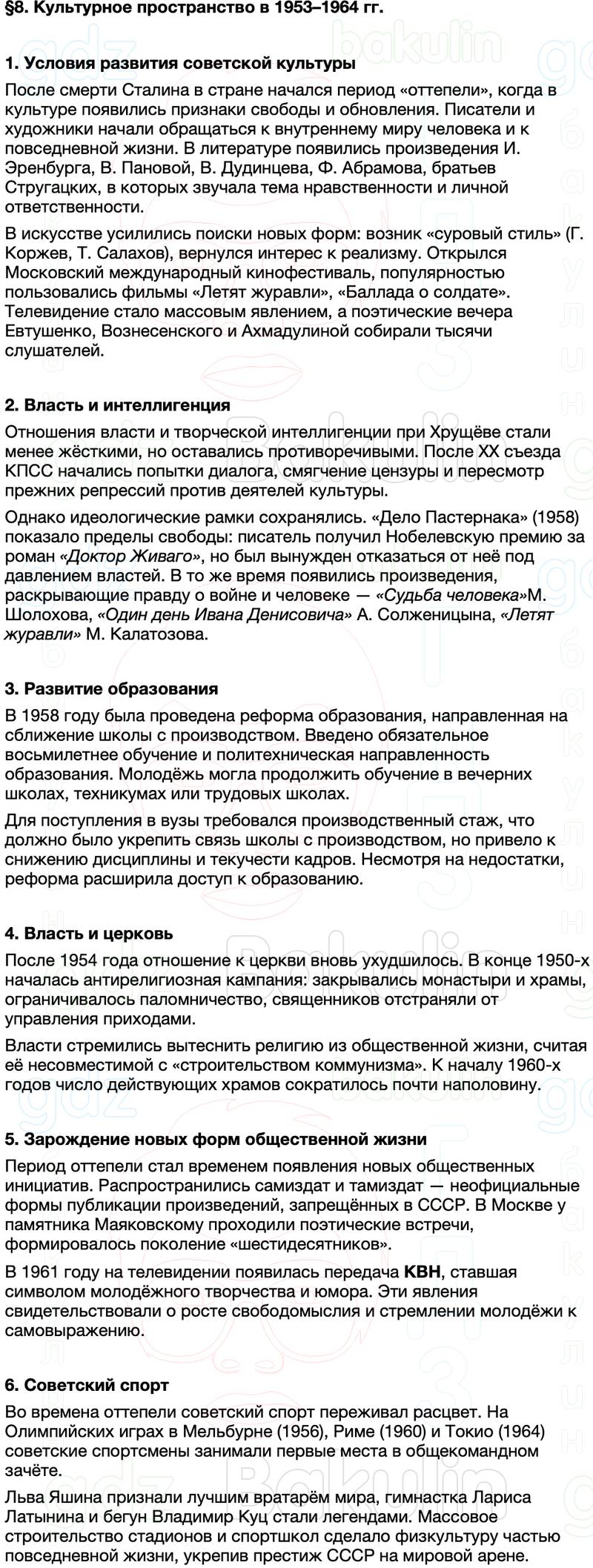 Правильный ответ к заданию Краткий пересказ содержание История России 11 класс Мединский, Торкунов 2025 Параграф, номер 8 бесплатно онлайн