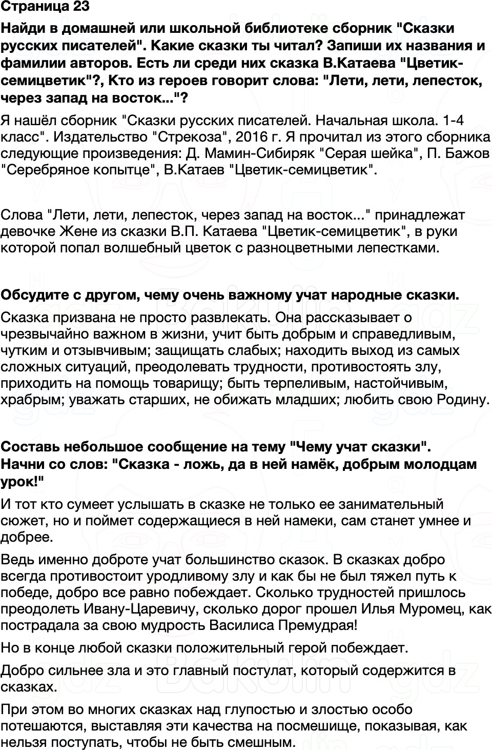 Правильный ответ к заданию ГДЗ Рабочая тетрадь Литературное чтение 2 класс Бойкина, Виноградская к учебнику Климова, Горецкий Школа России