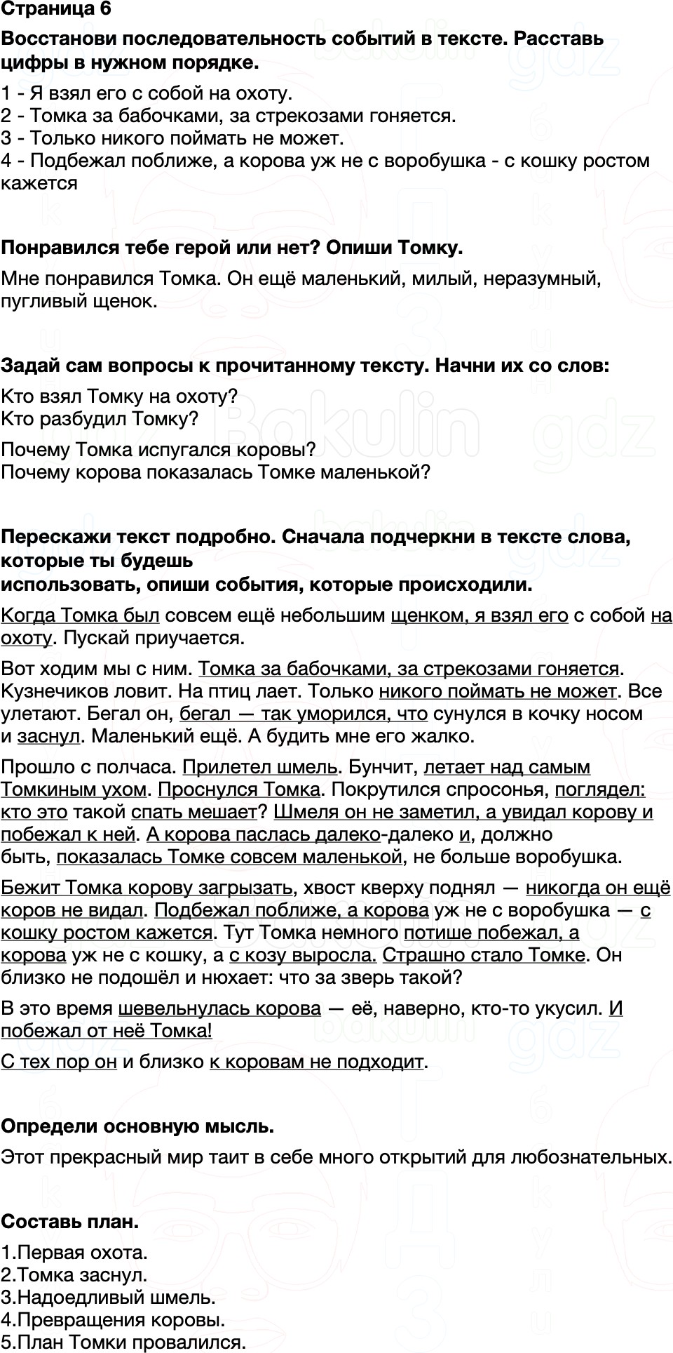 Правильный ответ к заданию ГДЗ Рабочая тетрадь Литературное чтение 2 класс Бойкина, Виноградская к учебнику Климова, Горецкий Школа России
