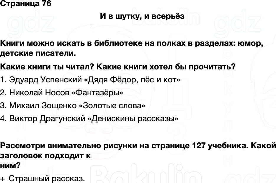 Правильный ответ к заданию ГДЗ Рабочая тетрадь Литературное чтение 2 класс Бойкина, Виноградская к учебнику Климова, Горецкий Школа России