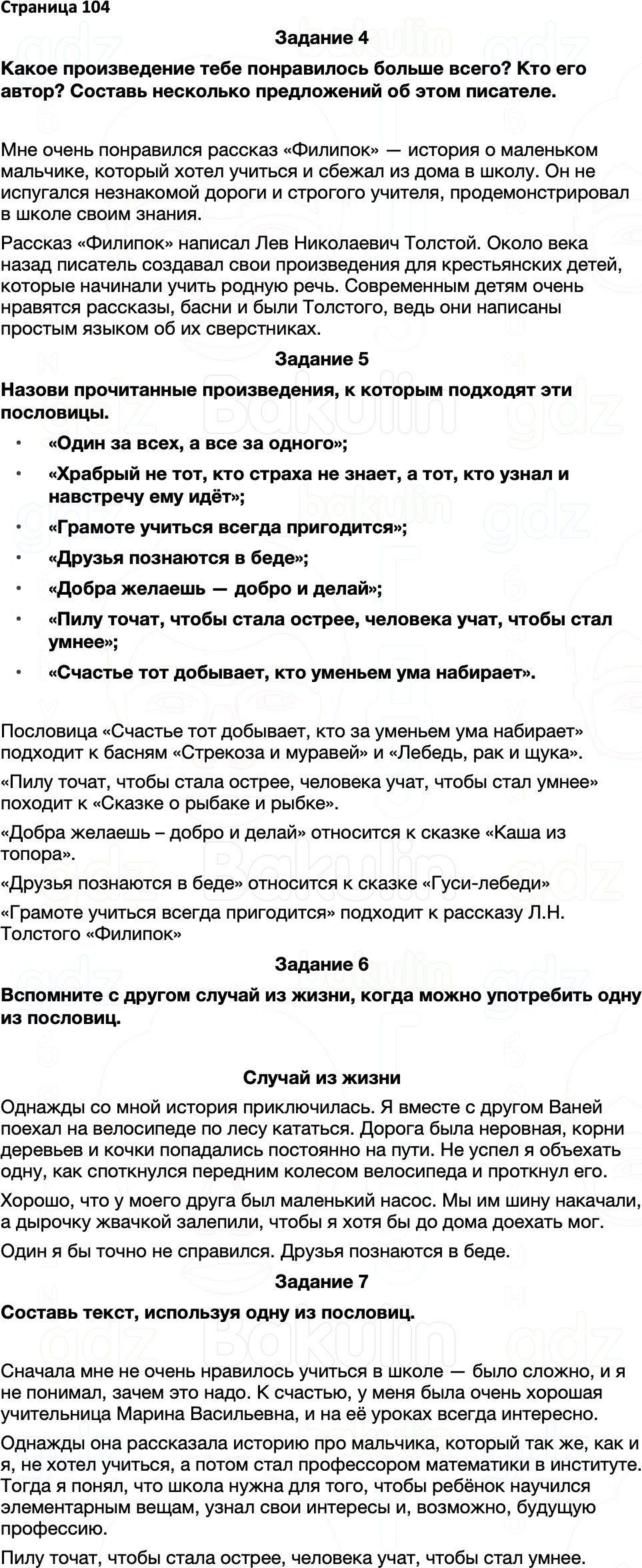 Правильный ответ к заданию ГДЗ учебник Литературное чтение 2 класс Климанова, Горецкий Школа России стандарт ФГОС
