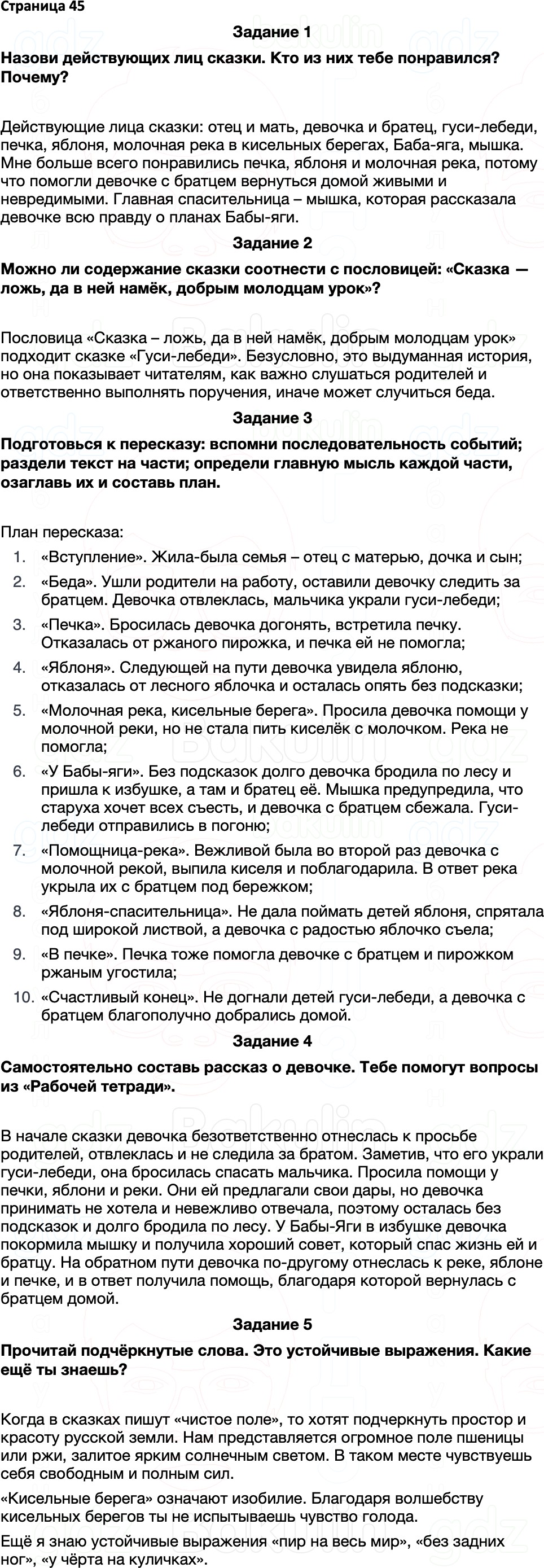 Правильный ответ к заданию ГДЗ учебник Литературное чтение 2 класс Климанова, Горецкий Школа России стандарт ФГОС