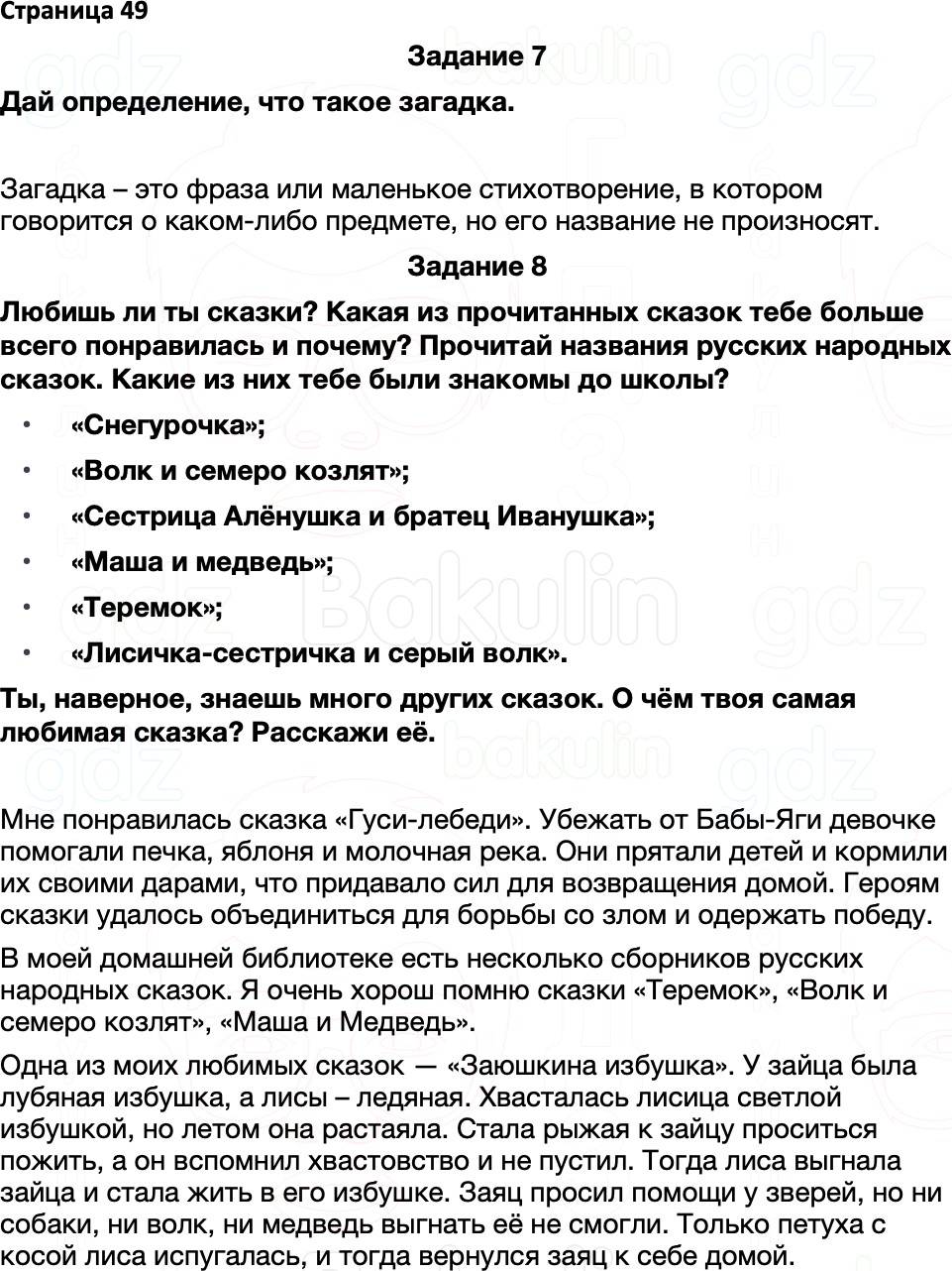 Правильный ответ к заданию ГДЗ учебник Литературное чтение 2 класс Климанова, Горецкий Школа России стандарт ФГОС