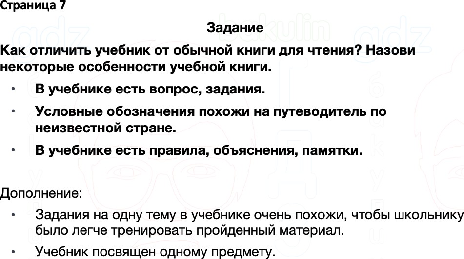 Как отличить учебник от обычной книги для чтения? Назови некоторые особенности учебной книги.