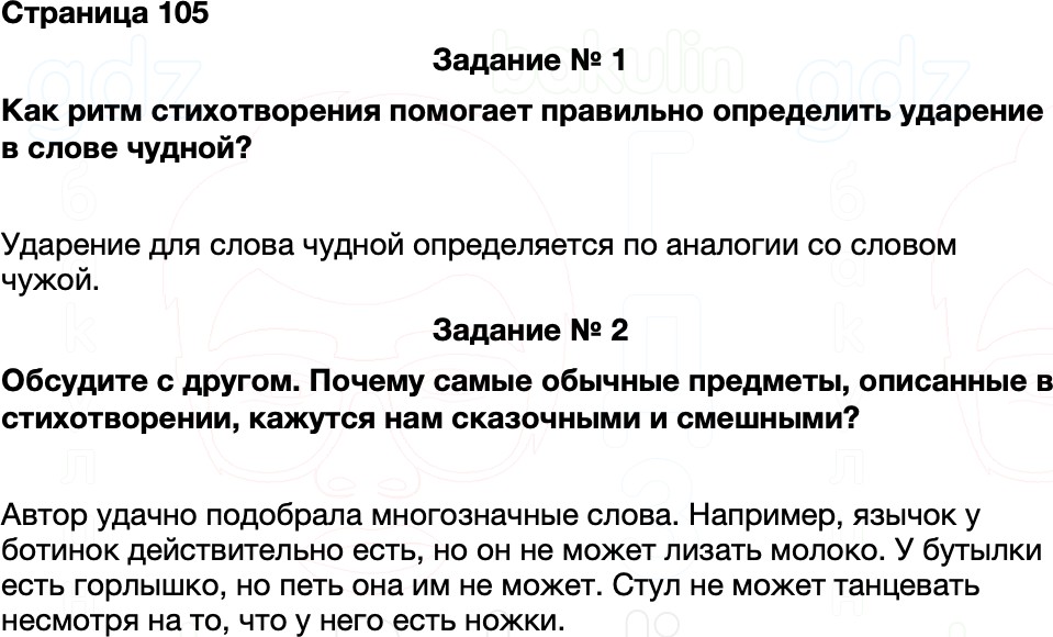 2. Обсудите с другом. Почему самые обычные предметы, описанные в стихотворении, кажутся нам сказочными и смешными?