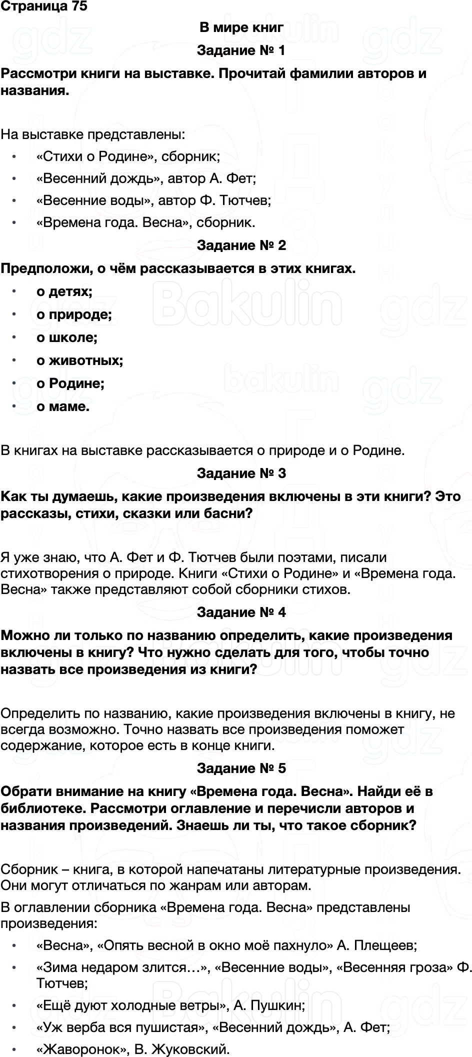 5. Обрати внимание на книгу “Времена года. Весна”. Найди её в библиотеке. Рассмотри оглавление и перечисли авторов и названия произведений. Знаешь ли ты, что такое сборник?