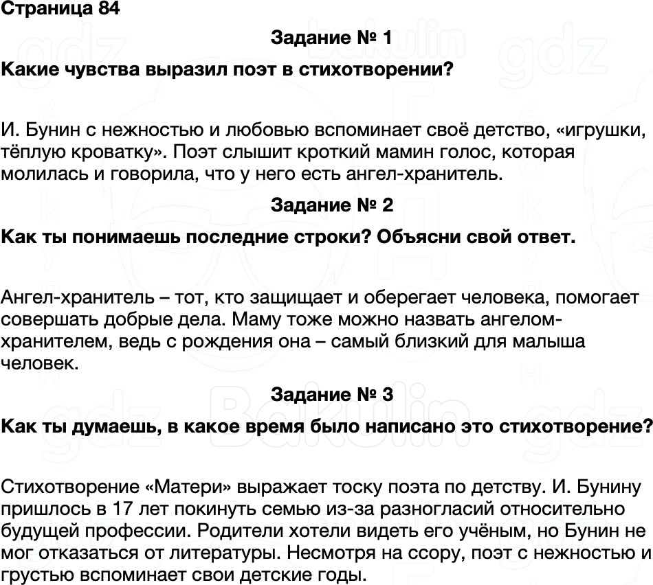 1. Какие чувства выразил поэт в стихотворении? 2. Как ты понимаешь последние строки? Объясни свой ответ. 3. Как ты думаешь, в какое время было написано это стихотворение?