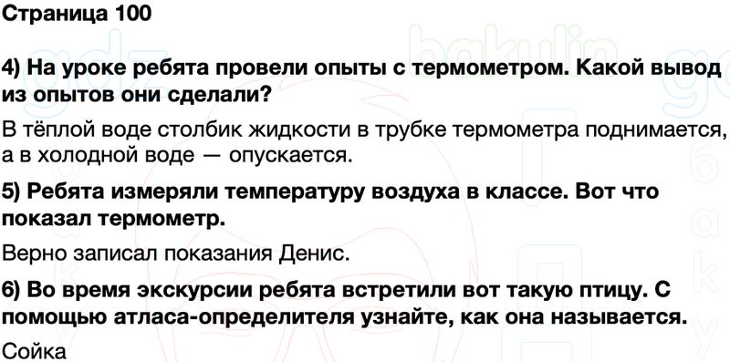 Правильный ответ к заданию ГДЗ учебник по окружающему миру 2 класс Плешаков ФГОС Часть 1 Страница, номер 100 бесплатно онлайн