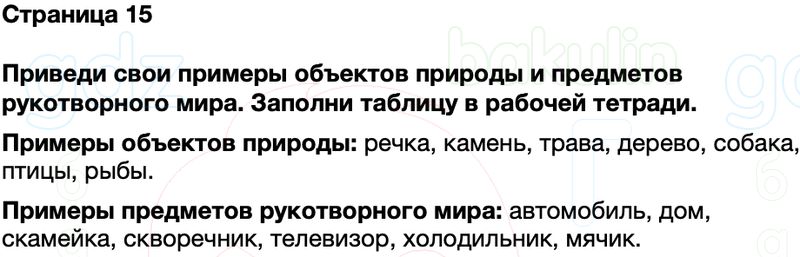 Страница 15 Приведи свои примеры объектов природы и предметов, созданных человеком.