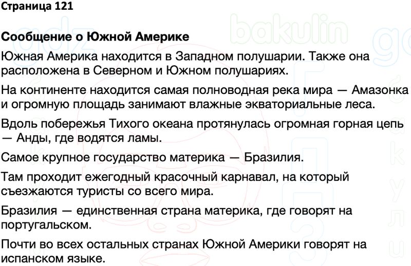 Страница 121 Найди и покажи на карте нашу страну. Приведи примеры стран, которые расположены на том же материке, южнее России.