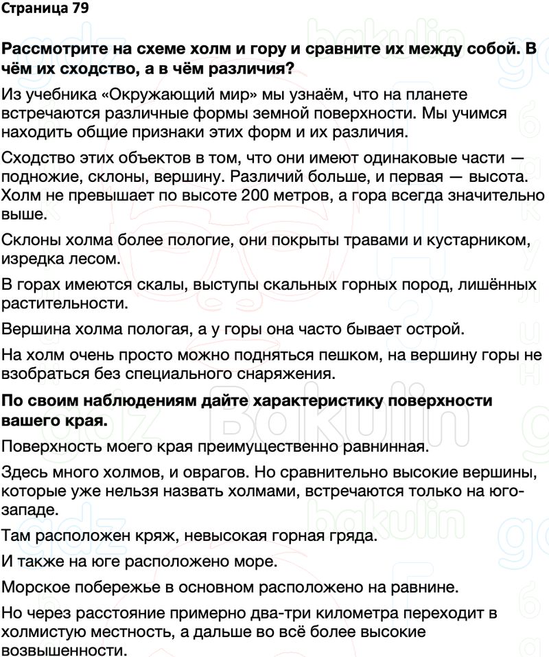Страница 79 № 1. Рассмотрите на схеме холм и гору и сравните их между собой. В чем их сходство, а в чем различие? Свои выводы сравните с текстом учебника.