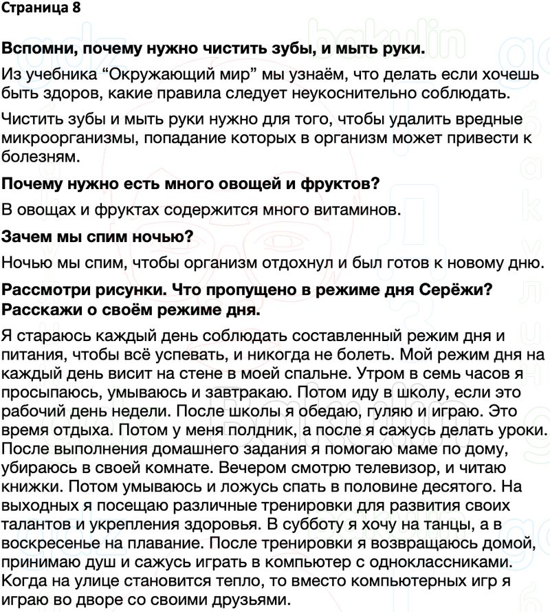Рассмотри рисунки. Что пропущено в режиме дня Сережи? Расскажи, как правильно построить режим дня.