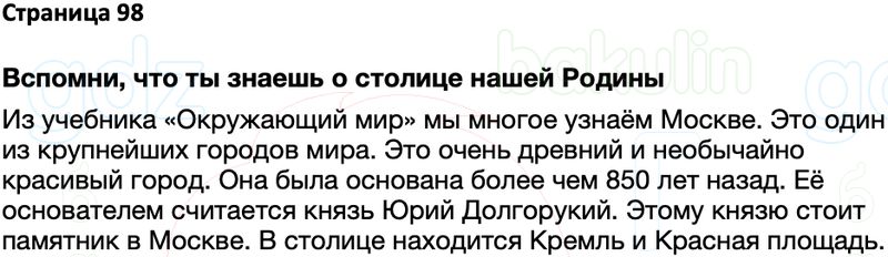 Страница 98 № 1. Приходилось ли вам бывать в Москве? Рассмотрите фотографии. Отметьте фишками (не наклеивая их) то, что вам удалось увидеть. Устно опишите достопримечательности по фотографиям и своим впечатлениям.