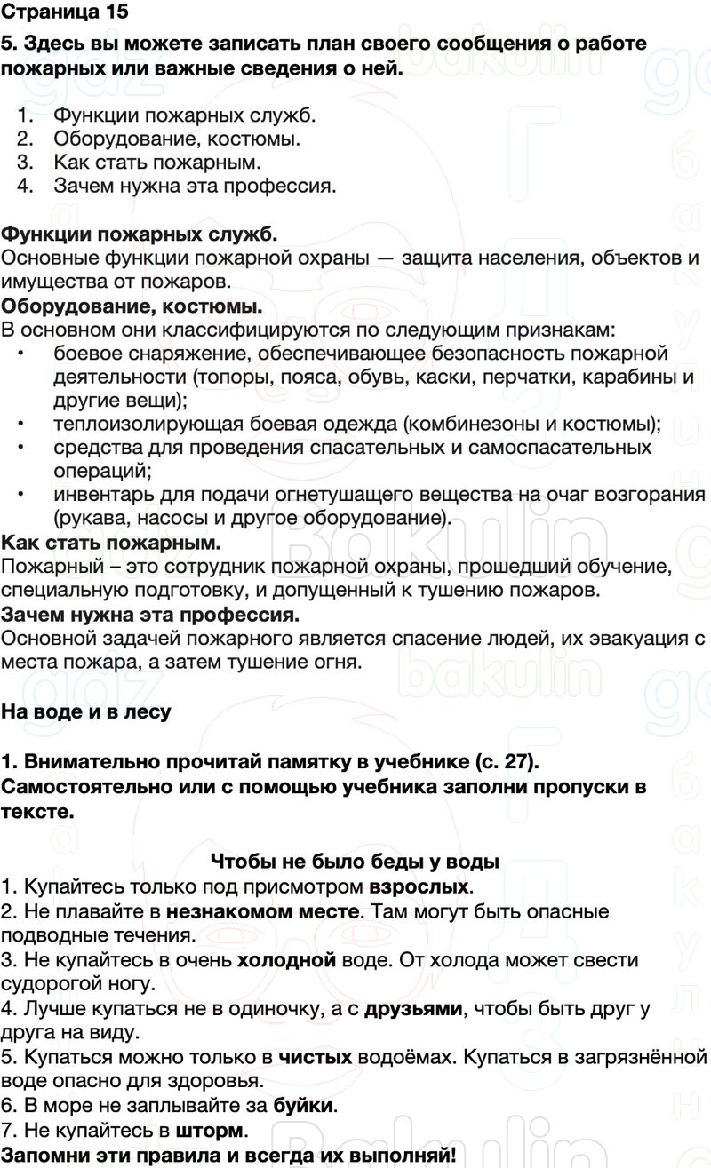 1. Внимательно прочитай памятку, которую пожарный раздал ребятам. Самостоятельно или с помощью учебника заполни пропуски в тексте.