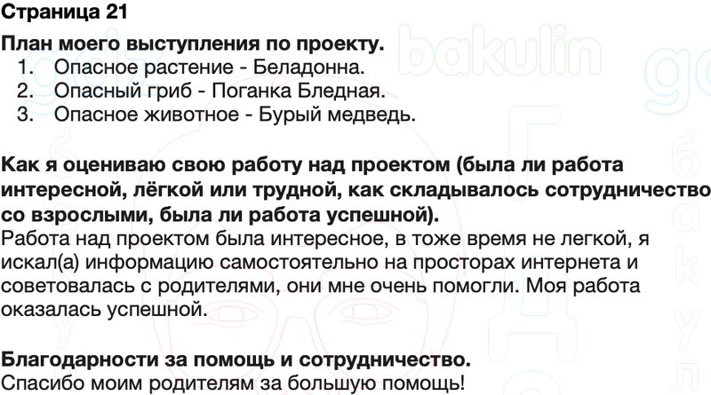 Работа над проектом была увлекательной, хотя в то же время она представляла собой непростой вызов. Я самостоятельно искал(а) информацию в интернете и консультировался(лась) с родителями, которые оказали мне большую поддержку и помощь. В итоге мой проект завершился успехом.