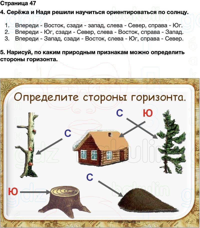 1) Прочитайте в учебнике, как определить на карте стороны горизонта. Обозначьте их на этой карте.