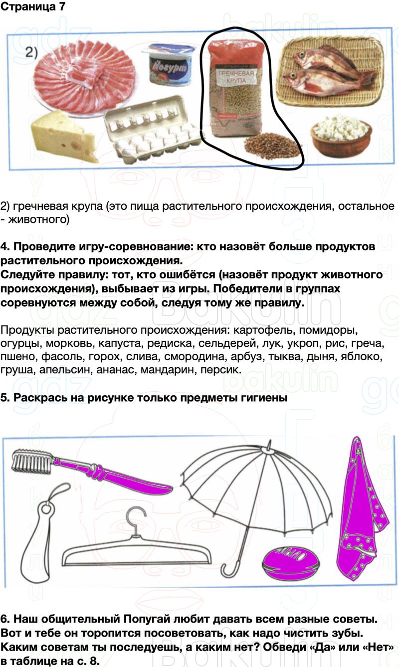 6. Наш общительный Попугай любит давать всем разные советы. Вот и тебе он торопится посоветовать, как надо чистить зубы. Каким советам ты последуешь, а каким нет? Обведи «Да» или «Нет» в таблице на с. 8.