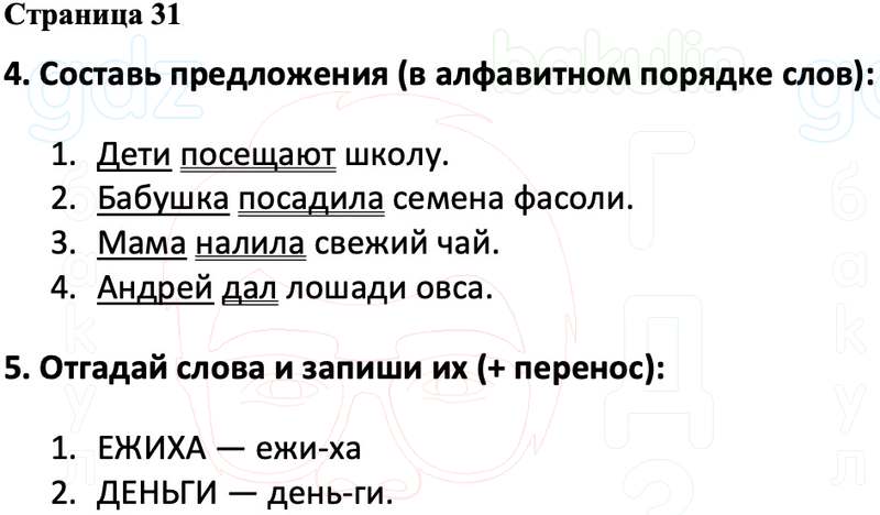 ГДЗ Тренажёр русский язык 2 класс Тихомирова (к учебнику Канакина, Горецкий) Страница / 31