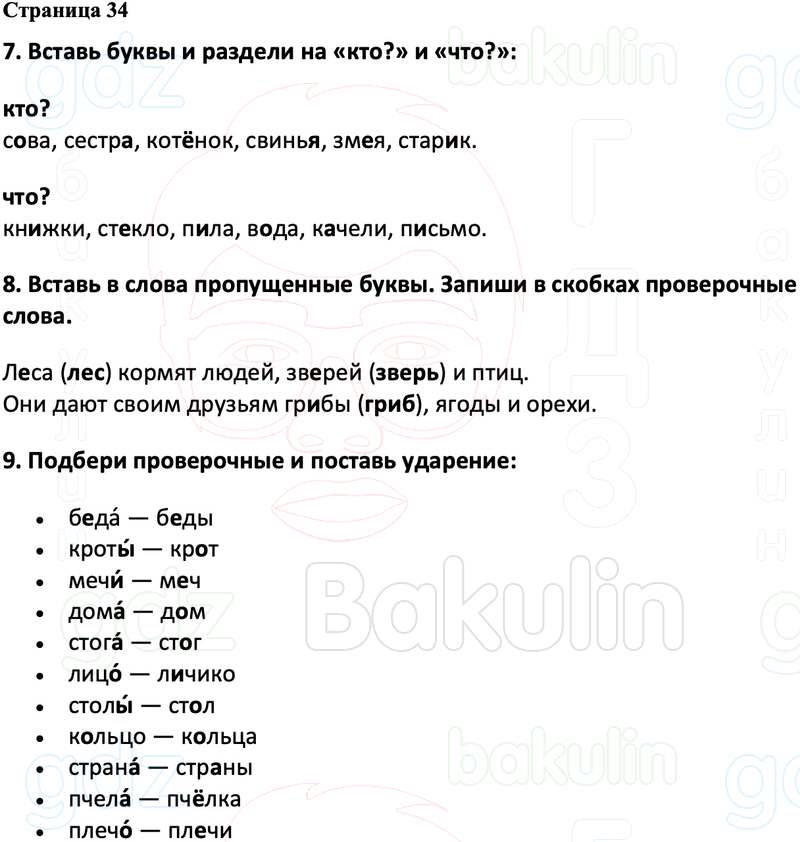 ГДЗ Тренажёр русский язык 2 класс Тихомирова (к учебнику Канакина, Горецкий) Страница / 34
