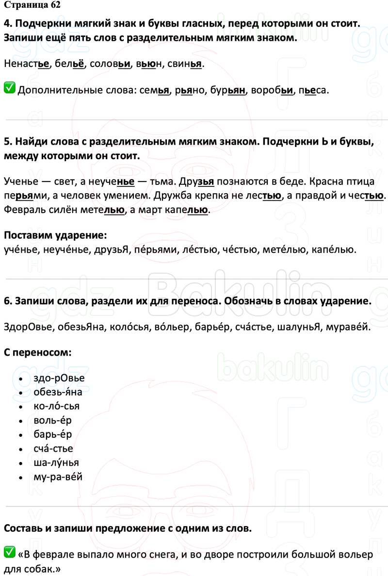 ГДЗ Тренажёр русский язык 2 класс Тихомирова (к учебнику Канакина, Горецкий) Страница / 62