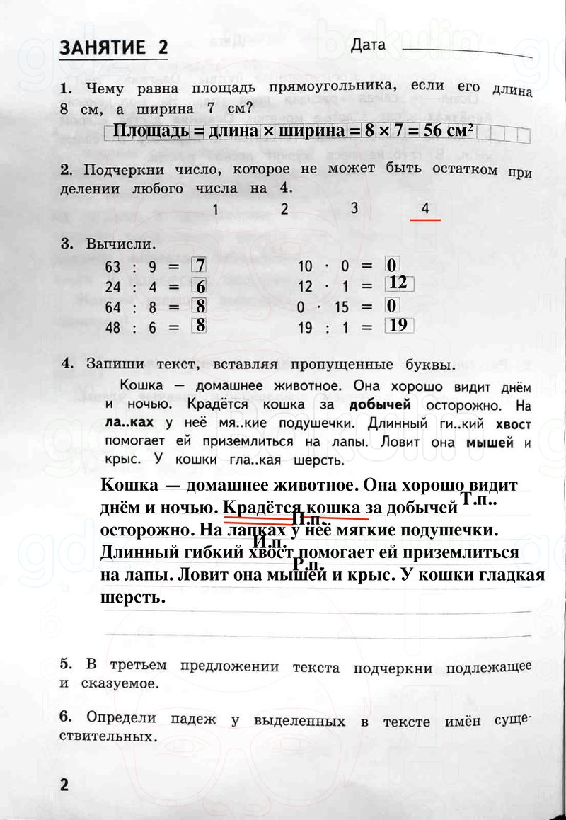 2. Подчеркни число, которое не может быть остатком при делении любого числа на 4.