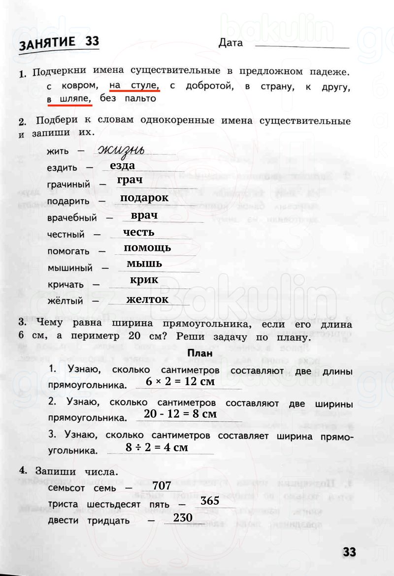 1. Подчеркни имена существительные в предложном падеже: