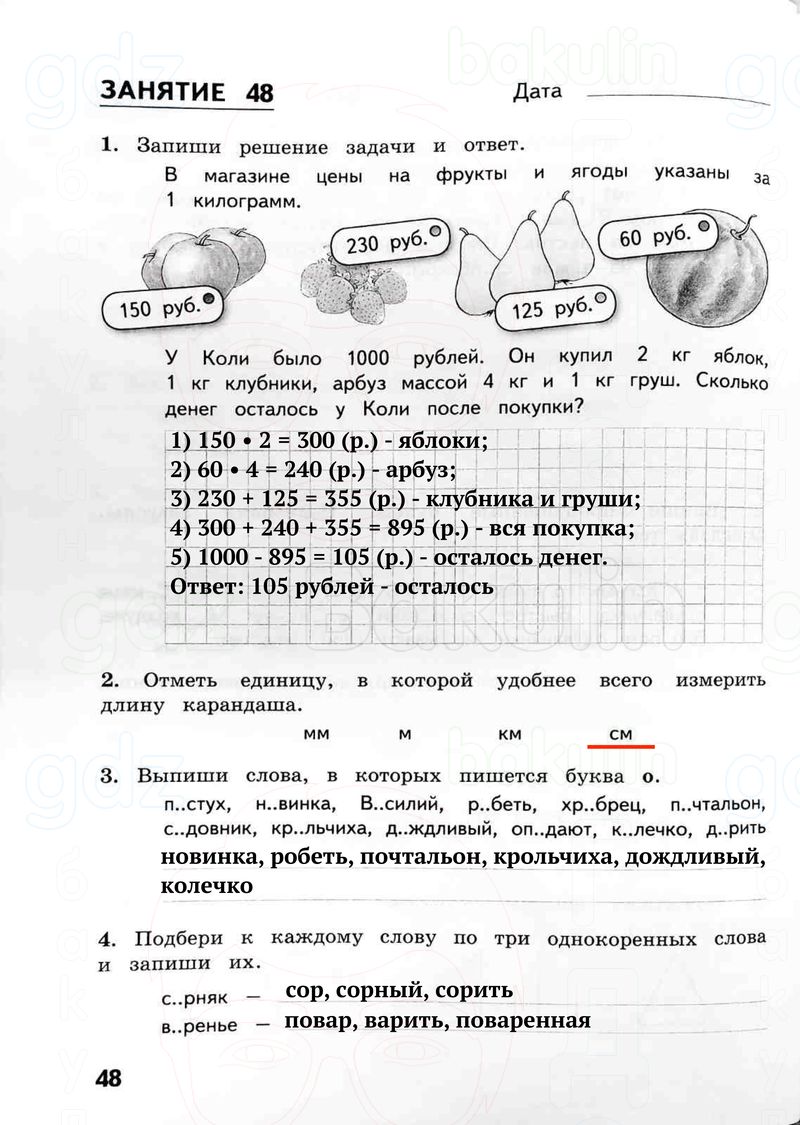 1. Запиши решение задачи и ответ.