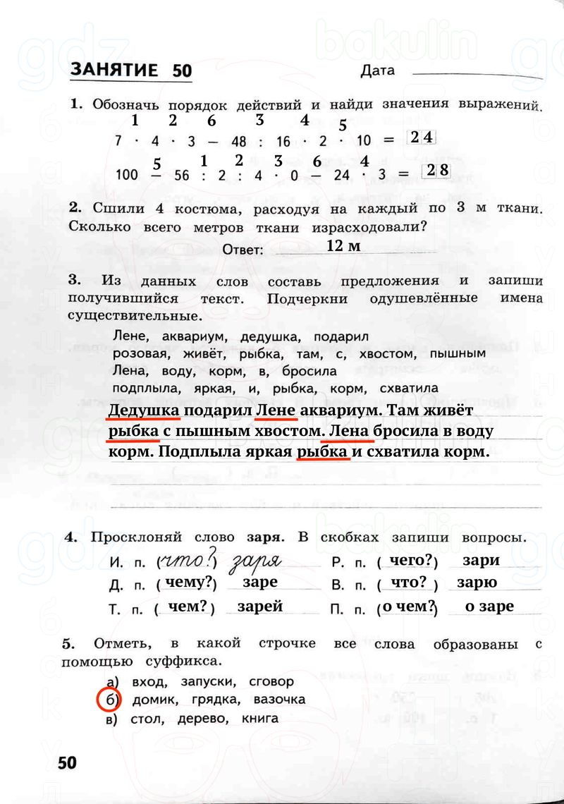3. Из данных слов составь предложения и запиши получившийся текст. Подчеркни одушевлённые имена существительные.