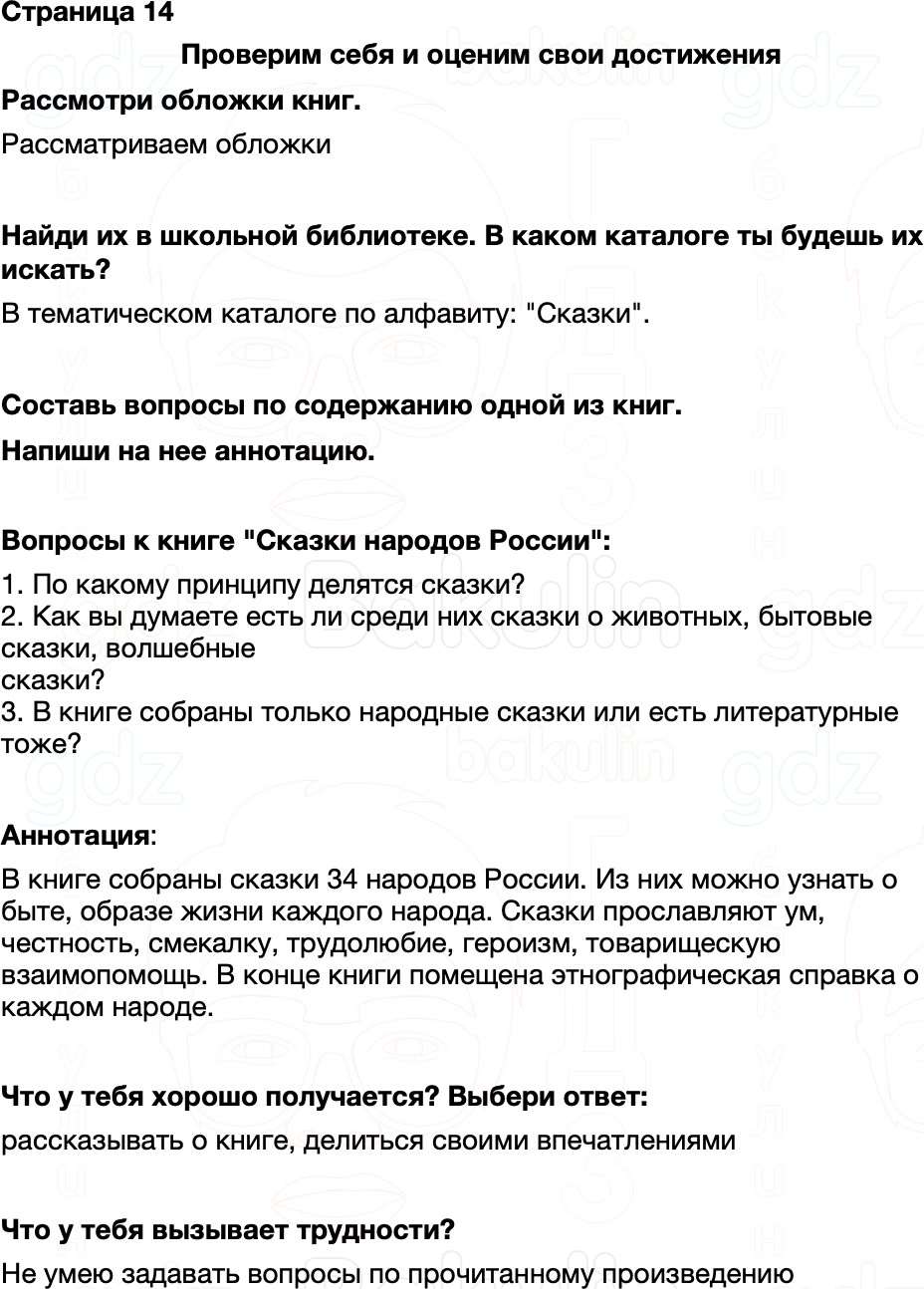 Страница 14. Номер 1 Найди её в тематическом каталоге библиотеки.
