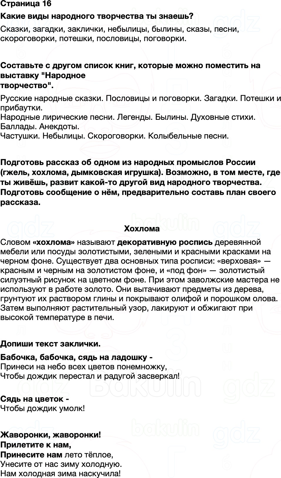 Страница 16. Номер 1 Подготовь рассказ об одном из народных промыслов России.