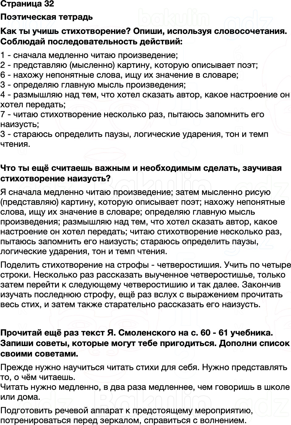 Как ты учишь стихотворение? Опиши, используя словосочетания. Соблюдай последовательность действий.