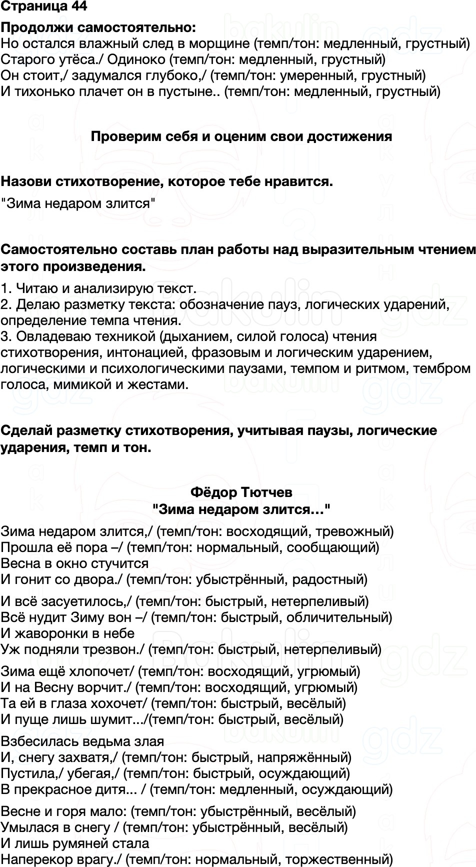 Правильный ответ к заданию ГДЗ Рабочая тетрадь Литературное чтение 3 класс Бойкина, Виноградская к учебнику Канакина, Горецкий Школа России