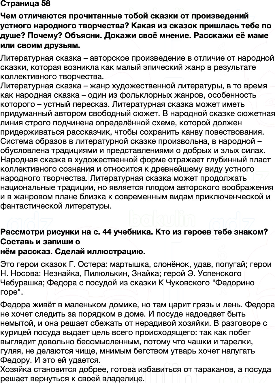 Правильный ответ к заданию ГДЗ Рабочая тетрадь Литературное чтение 3 класс Бойкина, Виноградская к учебнику Канакина, Горецкий Школа России