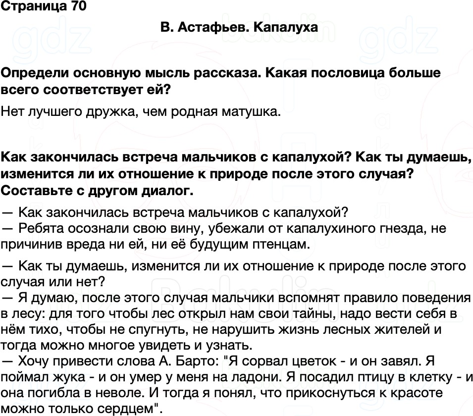 Как закончилась встреча мальчиков с капалухой? Как ты думаешь, изменится ли их отношение к природе после этого случая? Составьте с другом диалог. Запиши его.