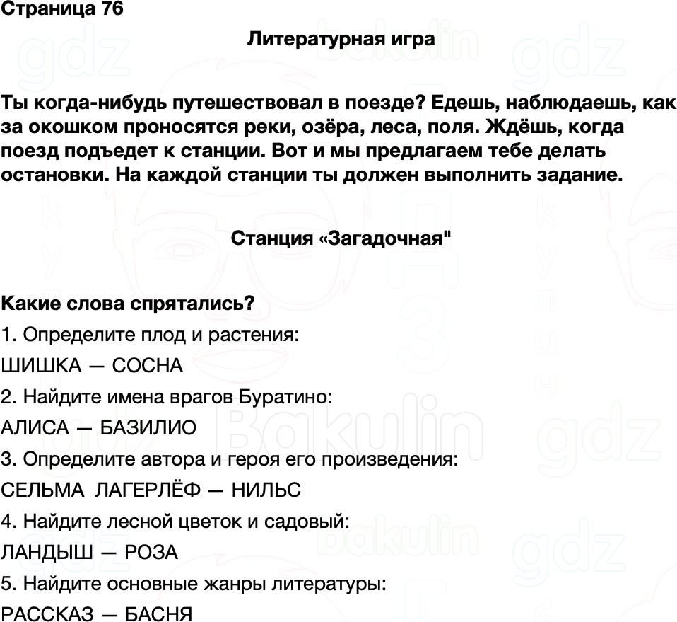 Правильный ответ к заданию ГДЗ Рабочая тетрадь Литературное чтение 3 класс Бойкина, Виноградская к учебнику Канакина, Горецкий Школа России