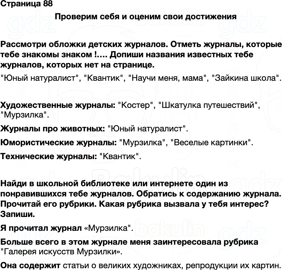 Правильный ответ к заданию ГДЗ Рабочая тетрадь Литературное чтение 3 класс Бойкина, Виноградская к учебнику Канакина, Горецкий Школа России