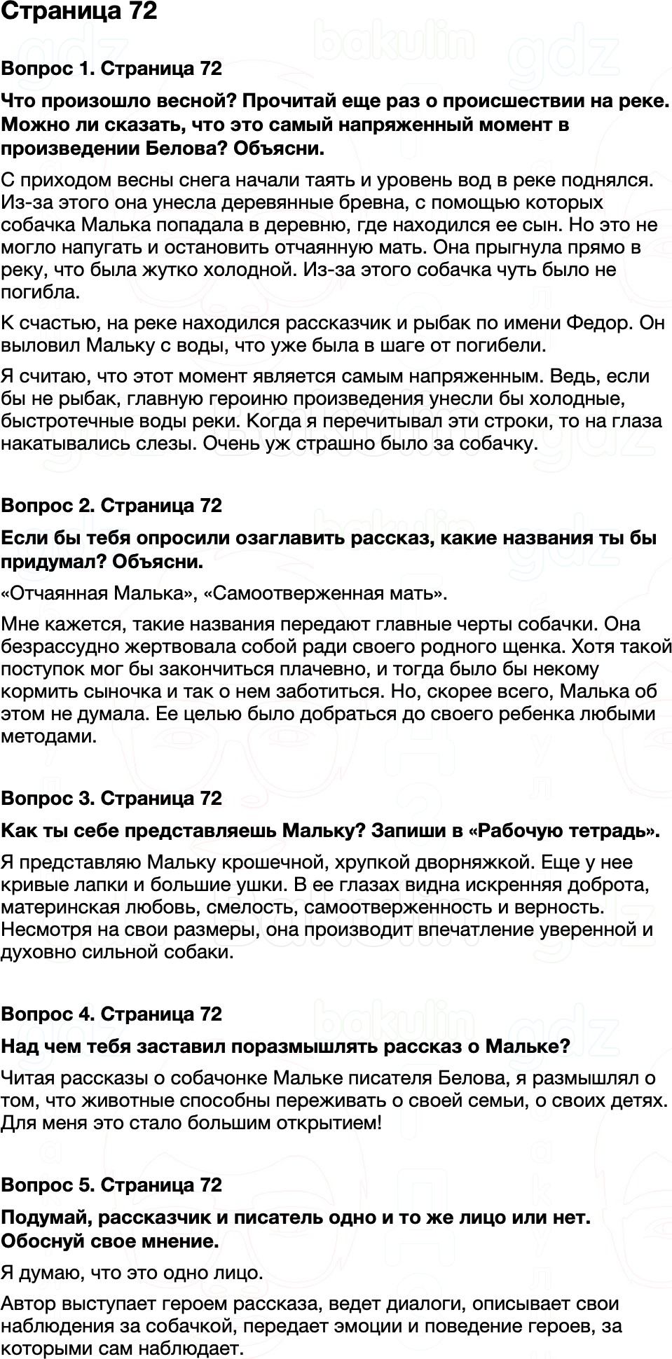 5. Найди эпизод, где описывается, как мечется капалуха. Как ты понимаешь смысл слов автора: «Это от испуга, гнева и бесстрашия билось птичье сердце»? Какие строки рассказа говорят о самоотверженной любви капалухи к птенцам? Прочитай их внимательно. Чем капалуха напоминает тебе Мальку из рассказа Белова?